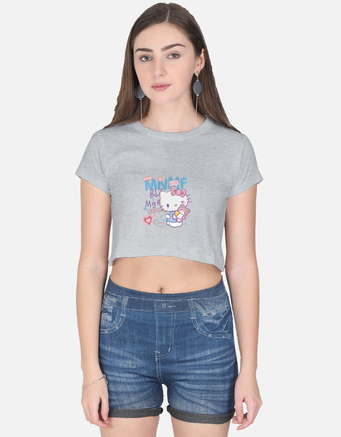 Cute meets cool in this cropped graphic tee featuring an adorable kitty character with pastel hearts, doodles, and bubble lettering. The jet‑black base makes the soft pinks and blues pop, while the flattering above‑waist cut pairs effortlessly with high‑rise jeans, shorts, or skirts. Finished with a snug crew neck and cuffed short sleeves for an easy, everyday look.