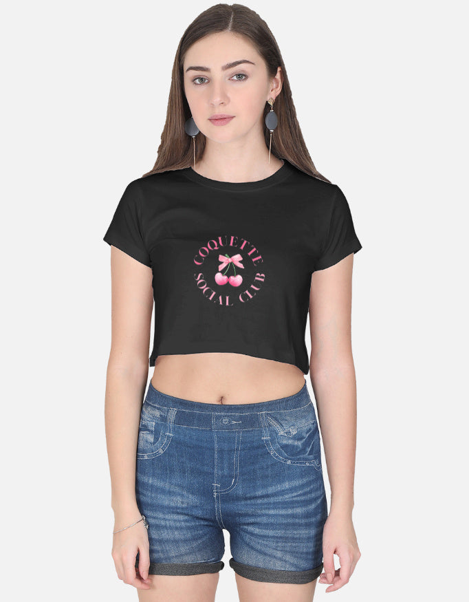 Channel your inner romantic with the Coquette Social Club Crop Top. This irresistibly sweet tee is the must-have piece for embracing the viral Coquette aesthetic, blending vintage charm with playful, modern femininity.