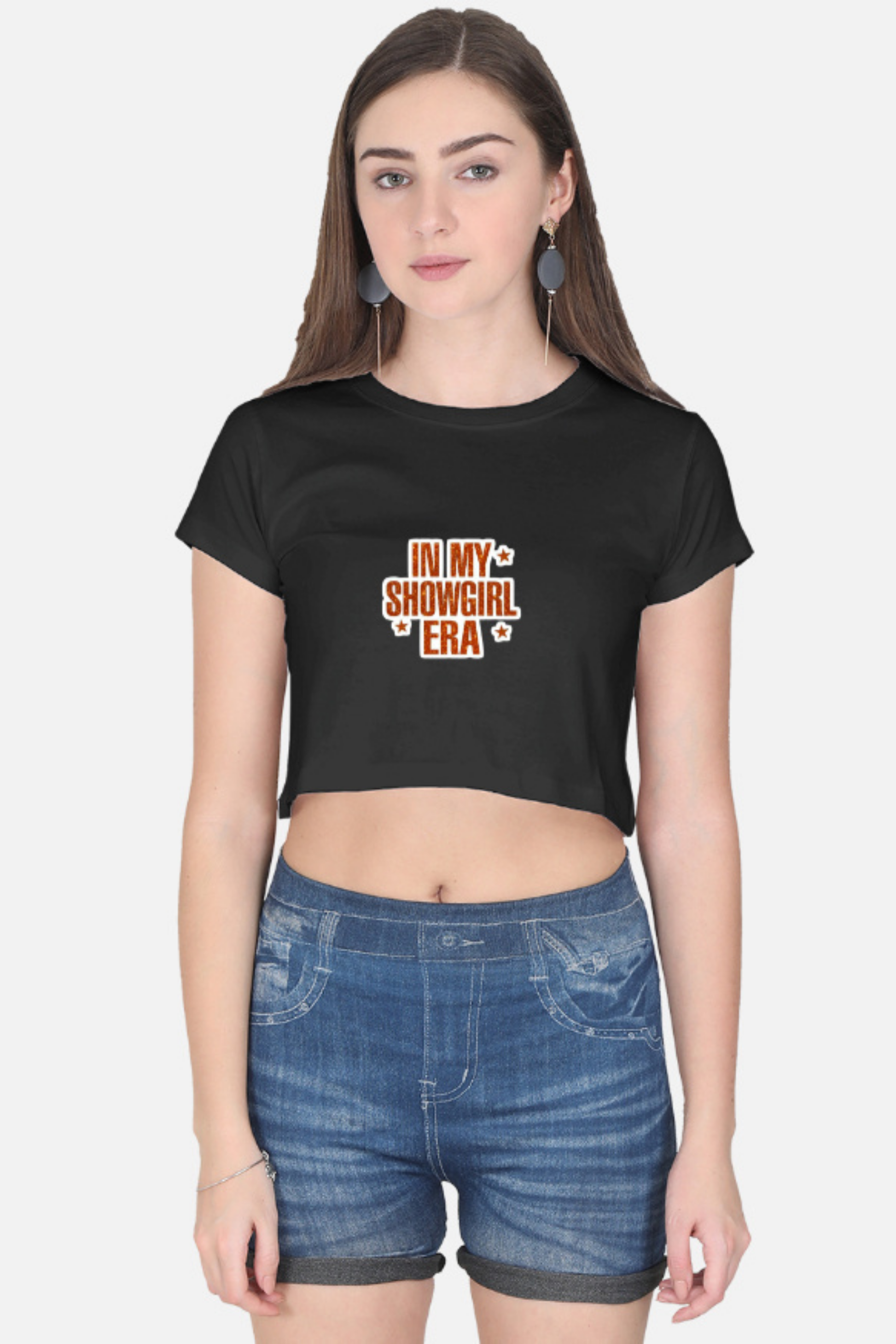 elebrate your most confident, dazzling phase with the 'In My Showgirl Era' Glitter Crop Top! This shirt is the ultimate mood booster and a trendy statement piece.