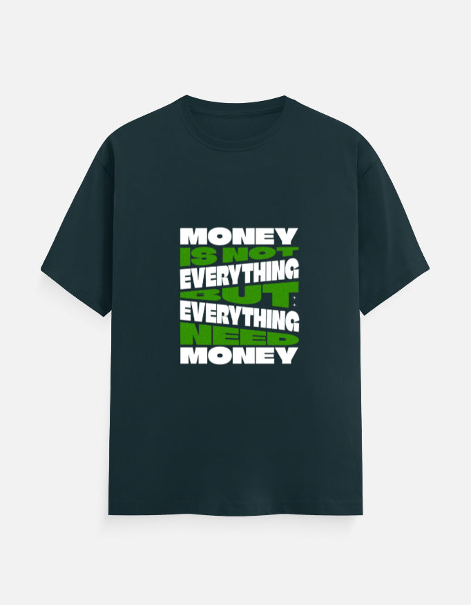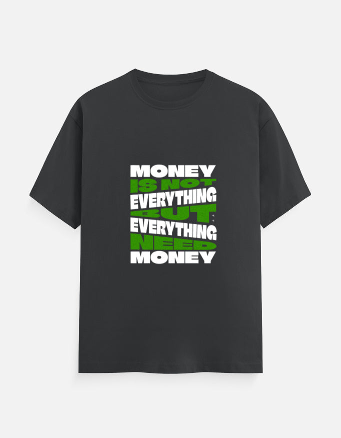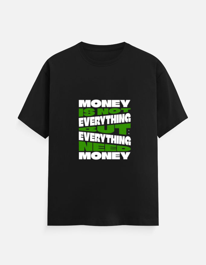 Make a bold statement with our "Money Is Not Everything" Graphic T-Shirt. Featuring a powerful message in eye-catching white and green block letters, this tee challenges conventional thinking with a witty twist: