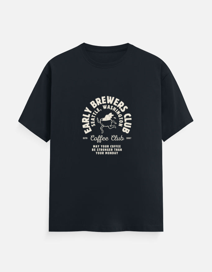 The Early Brewers Club Tee by Alaseee is brewed for coffee lovers and early risers who live life bold. Featuring a retro-inspired graphic with the words “May your coffee be stronger than your Monday”, this black tee captures the perfect mix of humor and lifestyle energy. Made with premium cotton and a relaxed fit, it’s designed to keep you comfortable whether you’re on your morning grind, hanging out with friends, or hitting your favorite café.