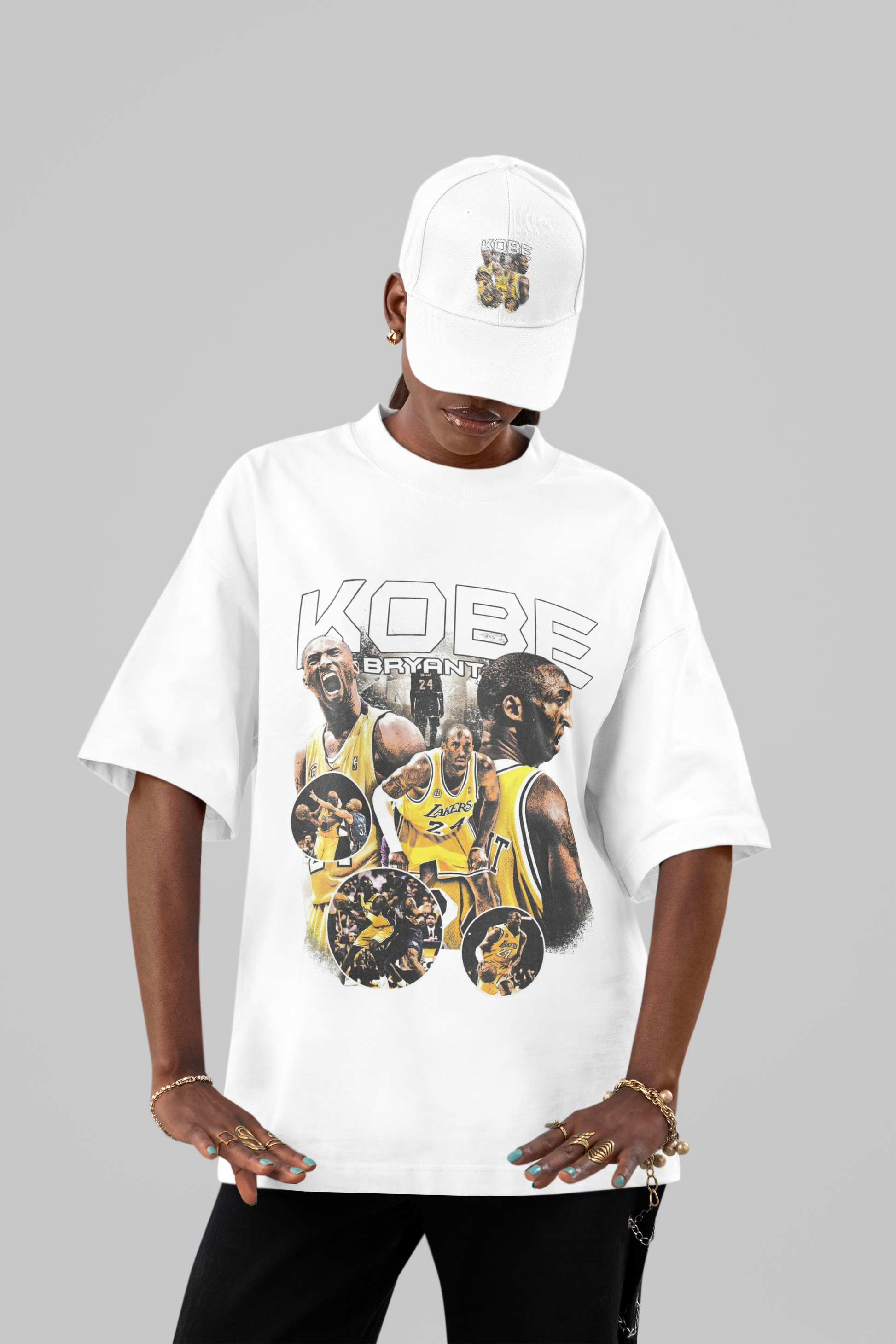Pay homage to a legend with our Oversized Vintage Kobe Bryant Tribute Tee. This iconic design captures the spirit of the Mamba Mentality, featuring a classic collage of Kobe in his prime, celebrating his legacy in Lakers purple and gold.