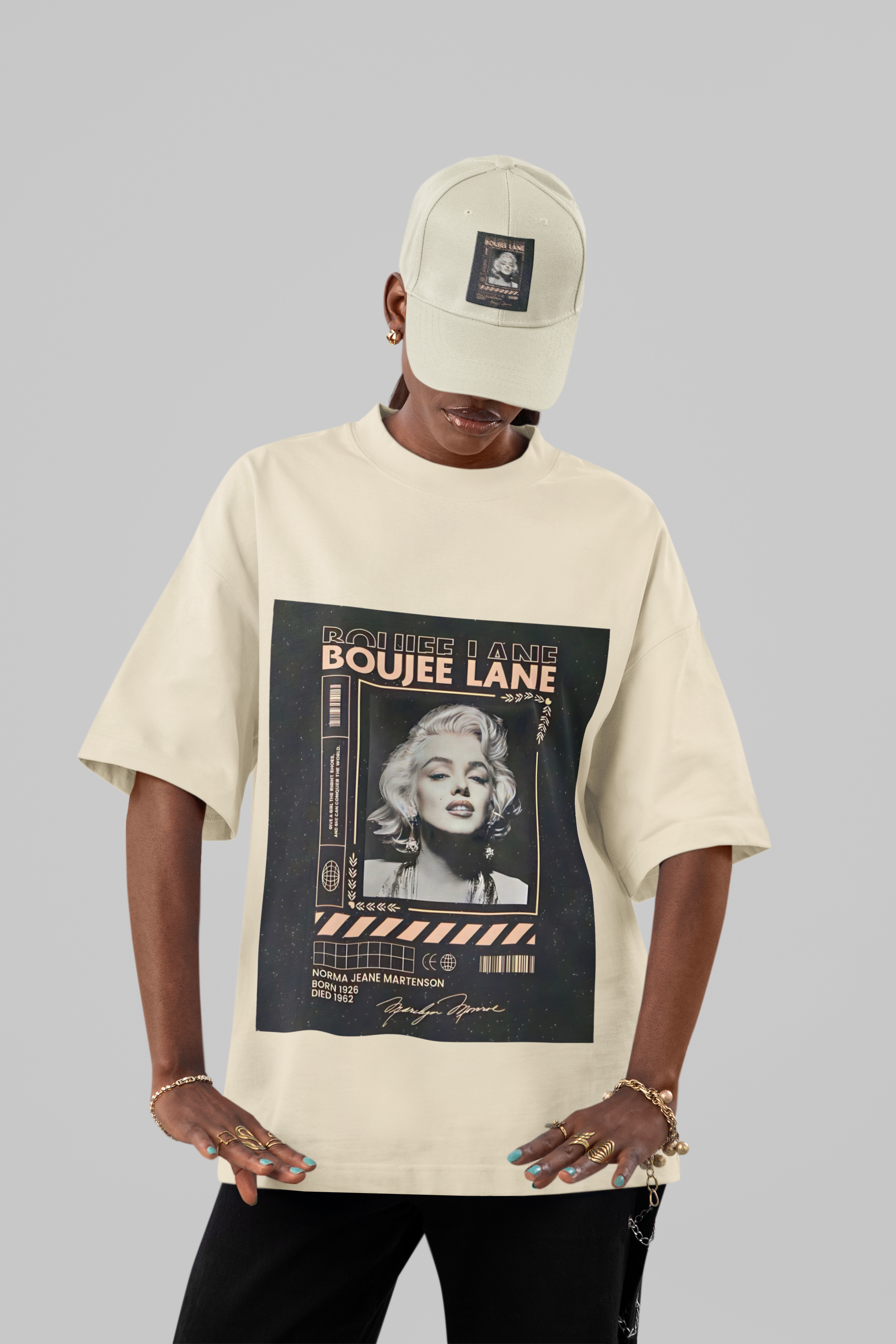 Turn heads and own the spotlight with the Boujee Lane™ Oversized Tee, a high-fashion homage to vintage glamour and streetwear edge. Featuring a stylized portrait of an iconic beauty, this tee blends old-Hollywood charm with futuristic design elements. Framed with barcode lines, coordinates, and digital motifs, the piece boldly celebrates femininity, rebellion, and timeless allure.