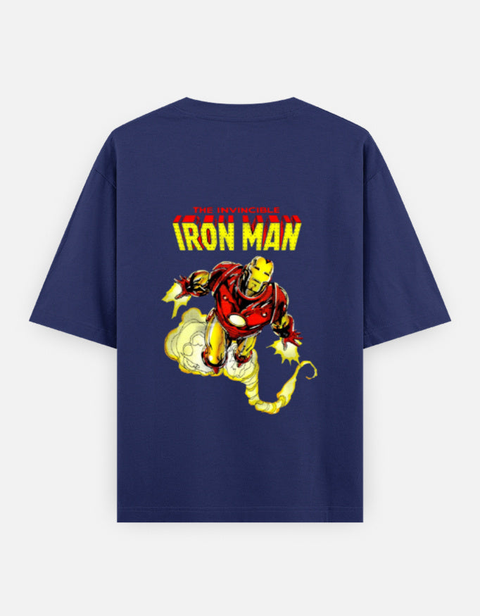 Suit up in classic Marvel style with our Invincible Iron Man Retro Comic Tee. Featuring vintage comic book artwork of Iron Man in full flight mode, this bold back-print design is a tribute to the legendary Avenger himself. The bright yellow and red graphics pop against the deep black cotton, making this shirt a standout piece for fans and collectors alike.