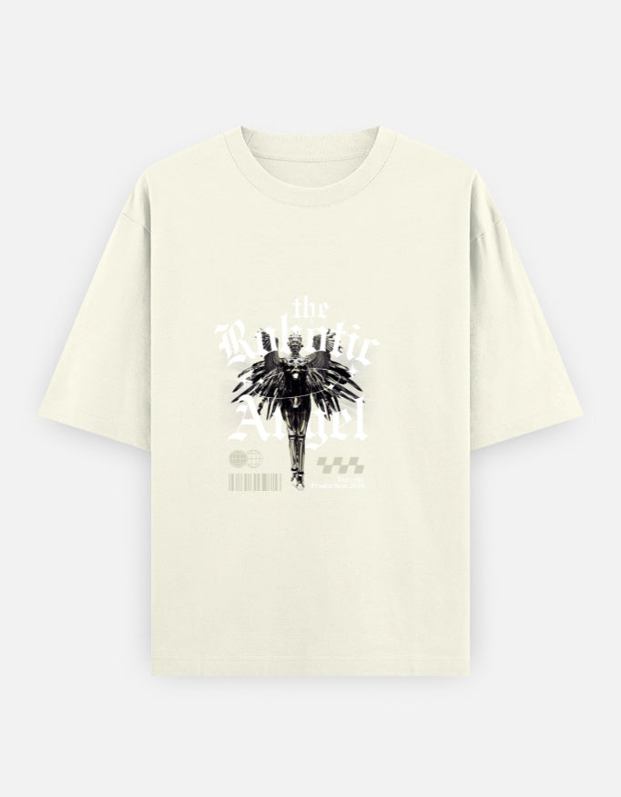 Step into a fusion of futurism and divinity with the Robotic Angel Tee. This bold graphic piece combines gothic-inspired typography with a high-impact metallic winged figure, representing the harmony between machine precision and celestial elegance.