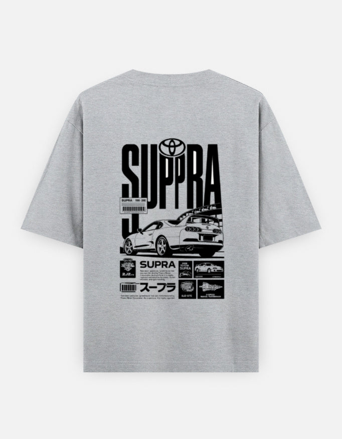 Complete with Japanese typography, retro specs, and bold "SUPRA" branding, this tee is perfect for car enthusiasts, streetwear lovers, and anyone who lives life in the fast lane.