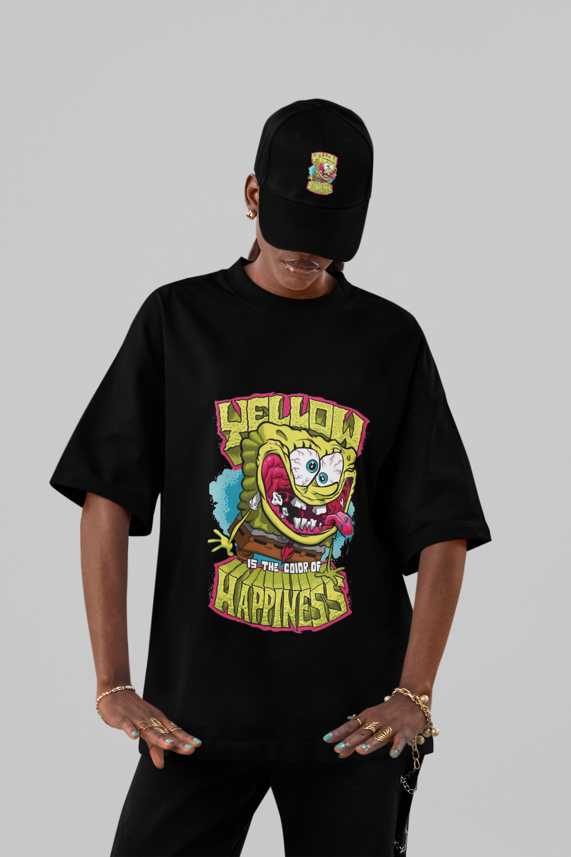 Bring the chaos, color, and cartoon vibes with the “Yellow Is the Color of Happiness” Oversized Tee & Cap Set! Featuring a wild, glitchy twist on a familiar sponge, this bold graphic explodes with personality. With loud neon tones, exaggerated facial expression, and trippy text design, this piece turns happiness into a statement.