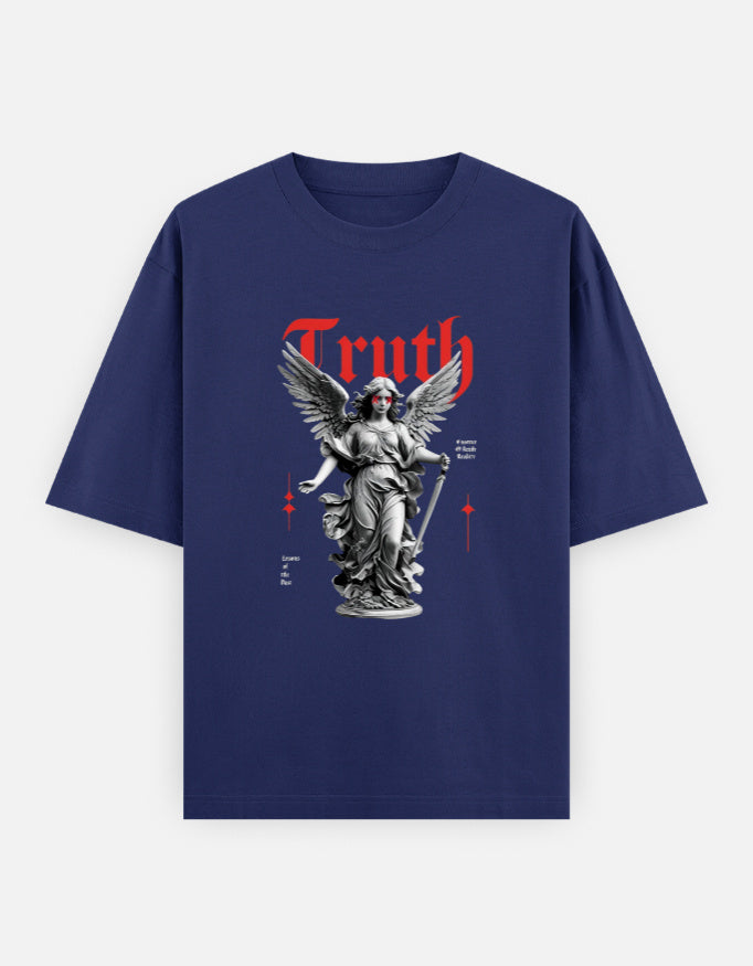 Step into bold expression with the Truth Guardian Oversized Tee. Featuring a powerful statue-inspired angel graphic and Gothic red typography, this piece blends classical art with modern streetwear. Subtle phrases like "Lessons of the Past" and "Protect Every Truth Boldly" add depth and intention to the design. Crafted from premium cotton for all-day comfort and a relaxed fit, this tee is more than a statement—it's a movement.