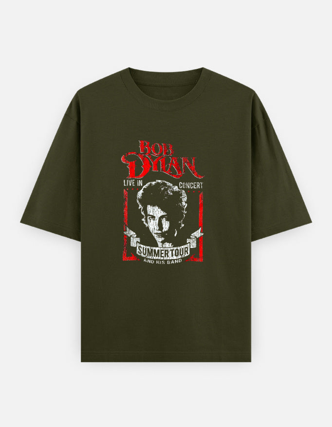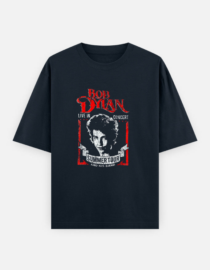 Celebrate the legacy of a music icon with this “Bob Dylan Summer Tour” vintage-style tee. Featuring a bold distressed print of Dylan’s unmistakable portrait and classic typography, this oversized shirt captures the spirit of legendary live performances. With a retro red-and-white design against deep black cotton, it’s the perfect piece for rock fans and streetwear heads alike. Comes with a matching embroidered cap to complet