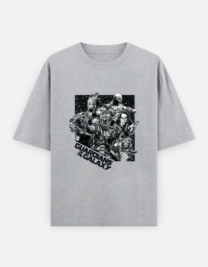 Suit up with the galaxy’s most unlikely heroes in our Guardians of the Galaxy Monochrome Oversized Tee. Featuring a high-impact black-and-white graphic of Star-Lord, Groot, Rocket, Drax, and Gamora set against a starry space backdrop, this oversized white tee is perfect for fans who want to rock their Marvel pride with subtle cosmic edge. The matching embroidered dad hat completes the space-ready streetwear vibe.