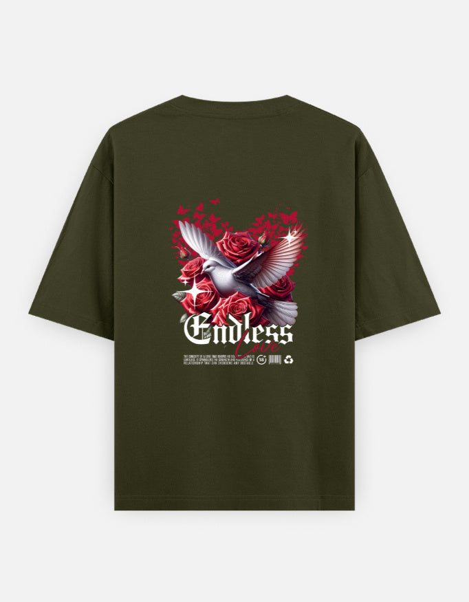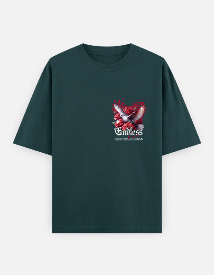 Celebrate eternal connection with the "ENDLESS LOVE" Oversized Tee — a striking blend of streetwear and symbolism. Featuring a powerful graphic of a soaring dove surrounded by vibrant red roses and fluttering butterflies, this design speaks to unbreakable bonds, romance, and timeless devotion. Gothic-style typography and a poetic message complete the look, making it a bold statement piece for lovers, dreamers, and rebels alike.