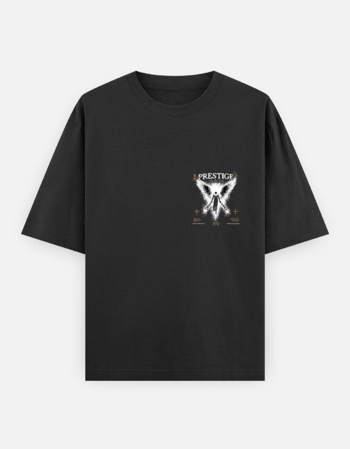 Unleash your inner rise with the "PRESTIGE ASCENT" Oversized Tee — a symbolic design of transformation, elevation, and power. Featuring a majestic winged figure breaking free from chains, this piece represents liberation, rebirth, and the strength to soar beyond limitations. Surrounded by gold-accented symbols, butterflies, and bold typography, it speaks to those chasing greatness through their own journey.