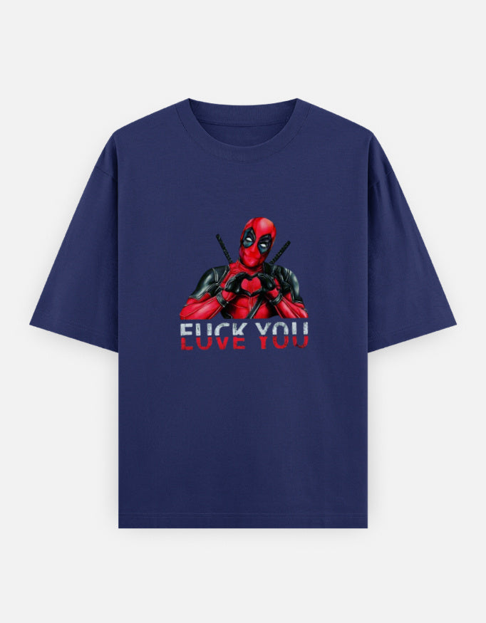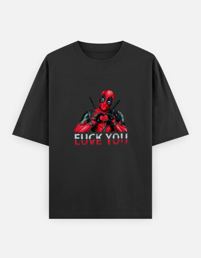 Say it with sarcasm, say it with style. The Deadpool “Love You / Fck You” Oversized Tee* perfectly captures the Merc with a Mouth’s signature blend of chaos and charm. Featuring Deadpool making a heart with his hands and a cheeky double-message graphic, this tee is for fans who like their fashion as irreverent as their humor.