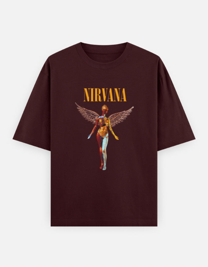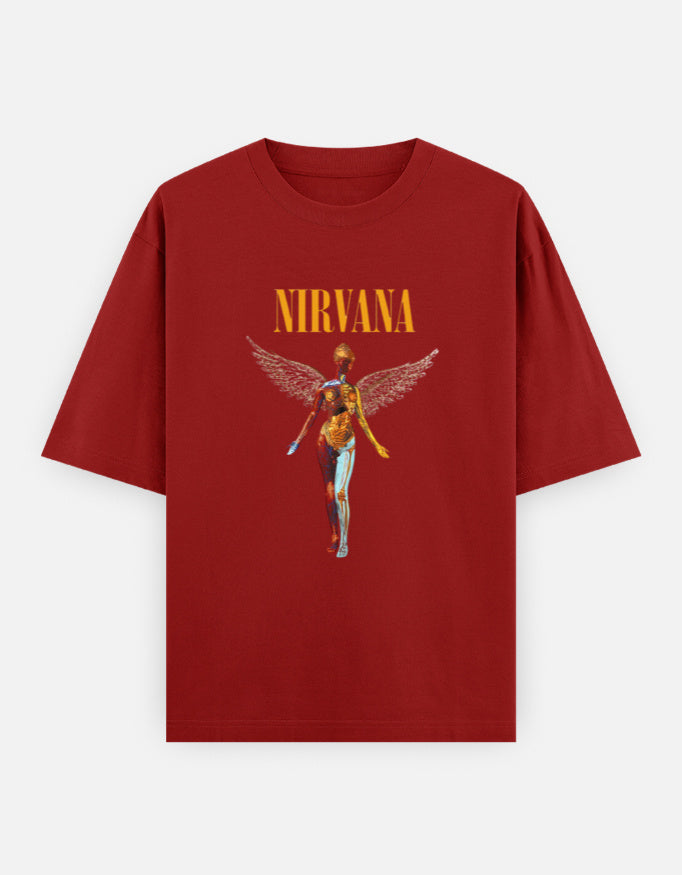Pay tribute to one of music's most iconic albums with our Nirvana In Utero Graphic T-Shirt. This tee features the legendary album art: a striking anatomical figure with wings and the band's name boldly printed above in its signature orange font.