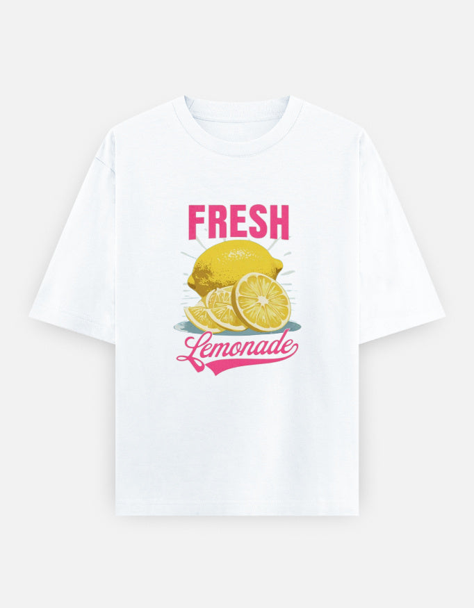 Squeeze the day with our Fresh Lemonade Classic Graphic Tee. This oversized t-shirt is a refreshing addition to your wardrobe, perfect for brightening up any sunny day.