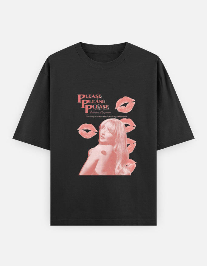 Step into the spotlight with our Sabrina Carpenter 'Please' Graphic Tee, a must-have for fans and fashion lovers alike. This oversized t-shirt features a vintage-style graphic inspired by the iconic song and music video, giving your look a touch of retro charm.