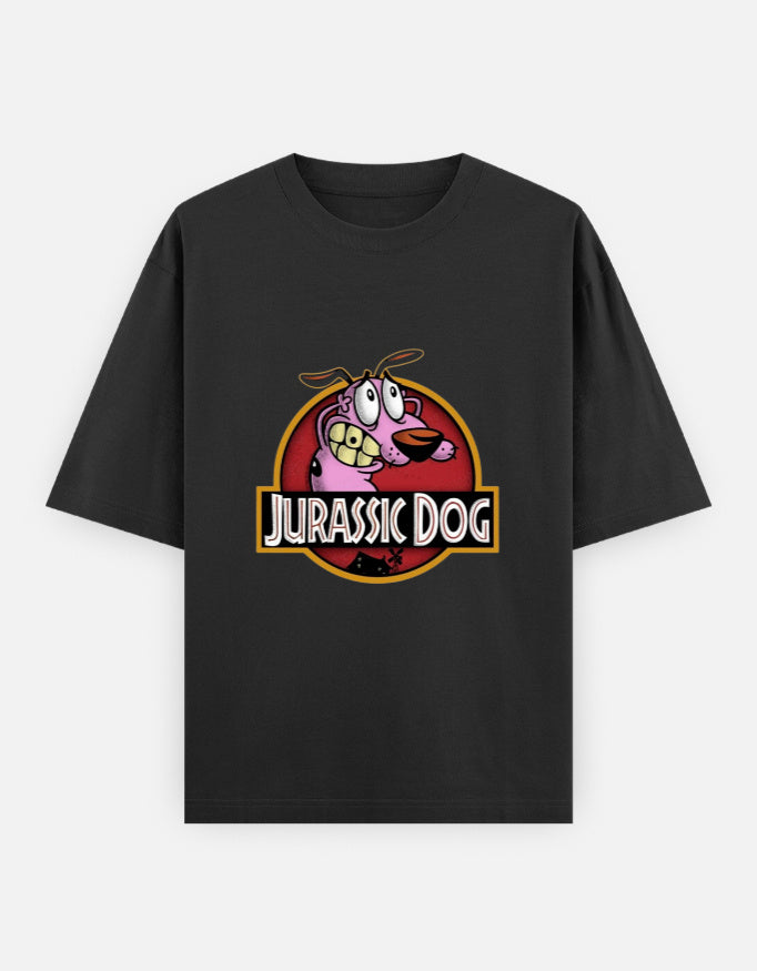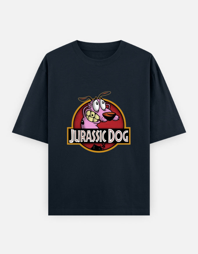 The design features the lovable and terrified Courage the Cowardly Dog inside a logo that's a perfect parody of the classic Jurassic Park emblem. With the title "JURASSIC DOG" in a familiar font, this tee is a witty nod that fans of both the classic Cartoon Network show and the legendary movie franchise will instantly appreciate.