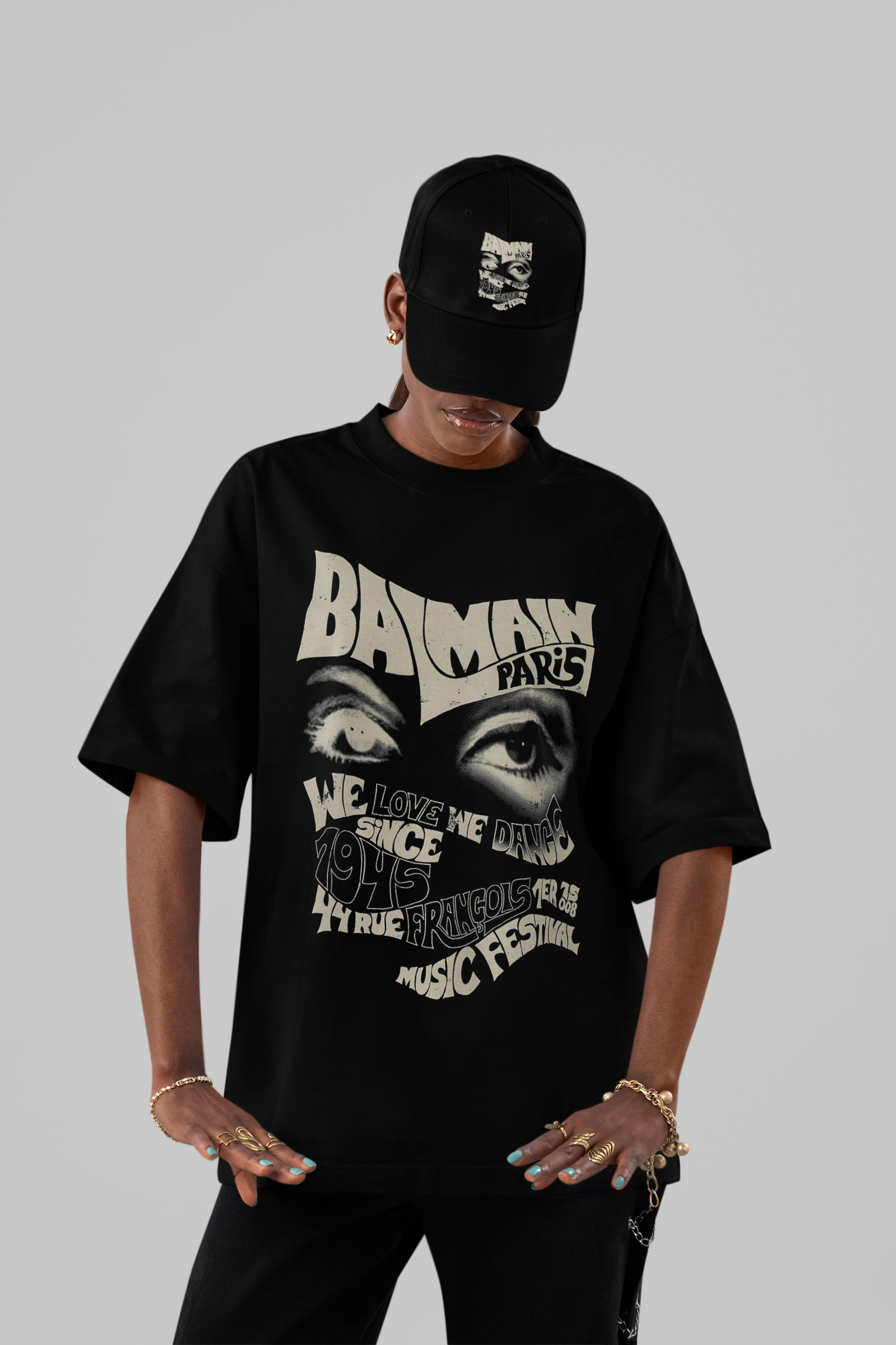 Step into the gritty, glamorous world of vintage rock and Parisian street style with this powerful graphic t-shirt. Our Balmain Paris Retro Eye Tee is the ultimate statement piece, channeling the rebellious spirit of the 1970s and iconic music festival posters.