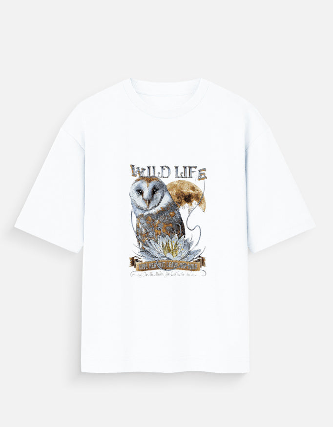 Wild Life Moonlit Owl Tee – Black Oversized Unisex