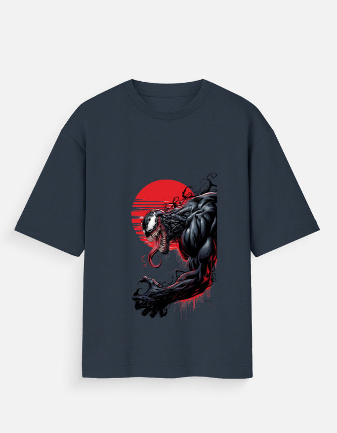 Turn up the intensity with this comic‑inspired symbiote tee, showcasing a ferocious black anti‑hero lunging across a bold crimson sun. The high‑contrast artwork pops on a crisp white base, with ink‑style drips and dynamic linework for a true graphic‑novel feel. Cut in a relaxed, drop‑shoulder silhouette, it blends streetwear edge with all‑day comfort.