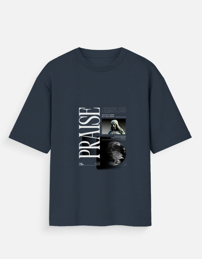 The PRAISE Tee is a visual declaration of faith and purpose. Designed in a modern streetwear format, this oversized black tee features powerful typography and visuals of Jesus with the message: