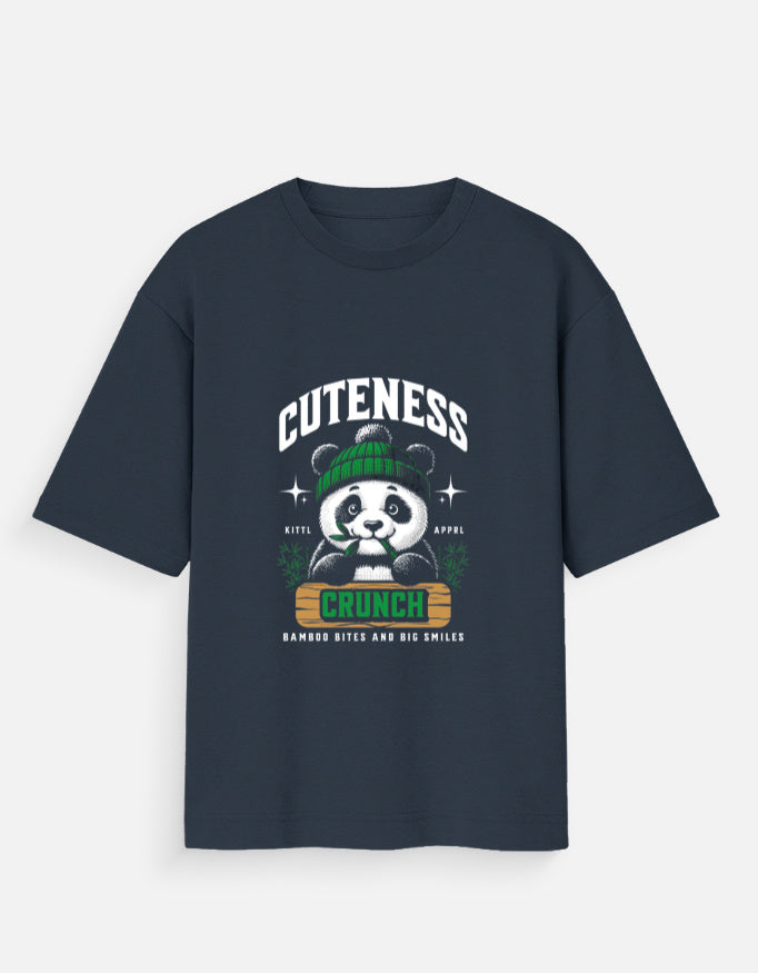 Add a bite of playful charm to your wardrobe with the Cuteness Crunch Panda Tee. Featuring a cozy, oversized fit, this shirt showcases an irresistibly adorable panda munching on bamboo, complete with a green beanie and sparkling eyes. Designed with bold "CUTENESS" lettering and playful taglines like "Bamboo Bites and Big Smiles," this tee is a perfect blend of comfort and streetwear style. Made for panda lovers, chill vibes, and anyone who appreciates cute with a crunch.