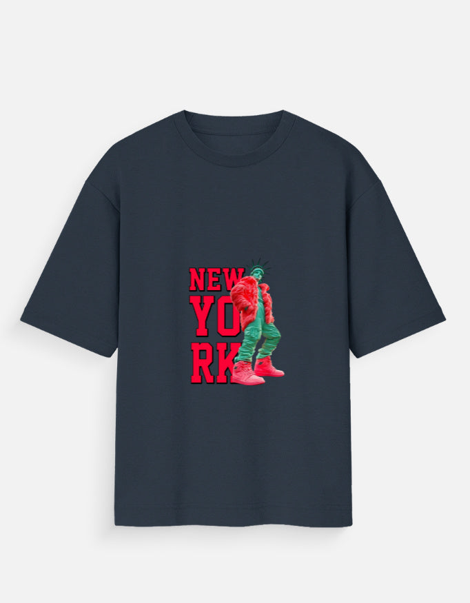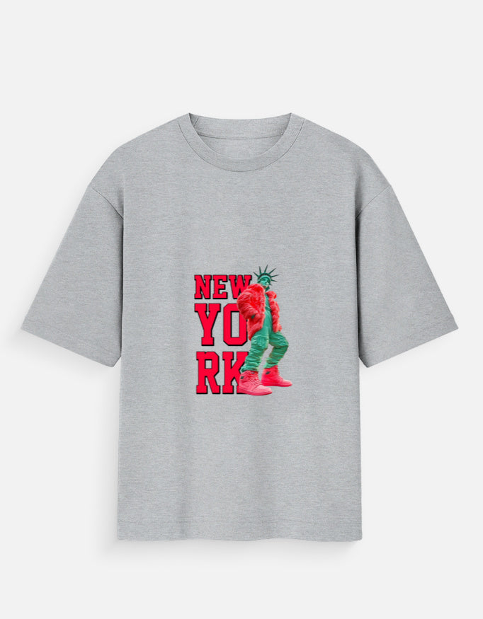 Bring NYC energy to any outfit with this standout graphic tee featuring bold “NEW YORK” block lettering and a playful Statue of Liberty character in streetwear kicks. Printed on a crisp white, mid-weight cotton blend, it’s cut with a relaxed, drop-shoulder silhouette for easy, everyday comfort. The high-resolution front print delivers vivid color and sharp detail that holds up wash after wash.