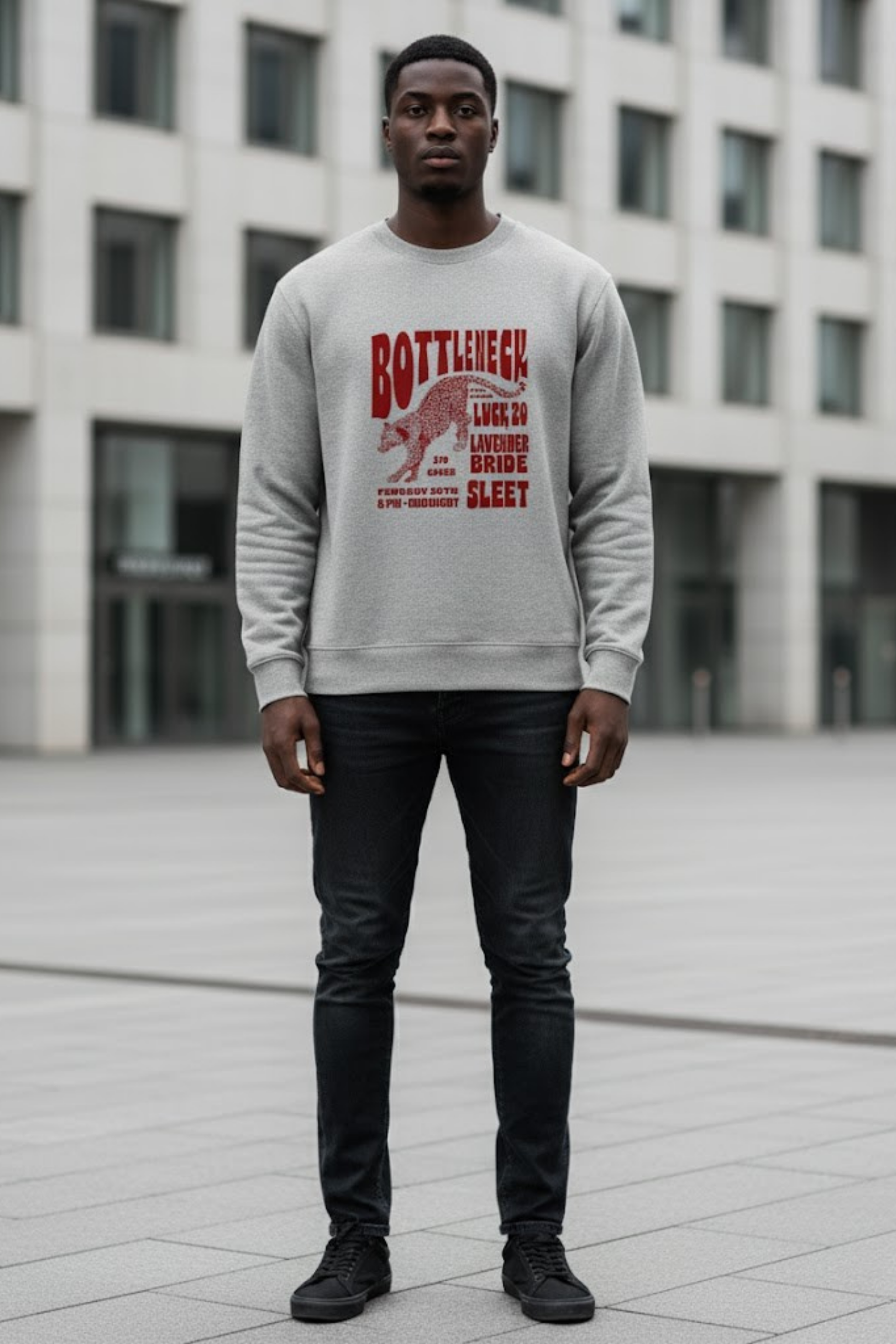 Step back in time with this instantly iconic crewneck sweatshirt featuring a graphic designed like a vintage concert poster. This piece captures the raw energy and gritty aesthetic of underground music culture, making it a must-have for those who appreciate band merch style and unique statement pieces.